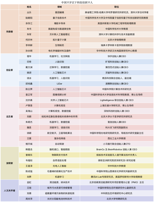 麻省理工科技评论发布中国35岁以下科技创新青年35人