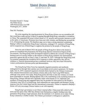 NEWS: yesterday members of the @CECCgov @SenRubioPress @RepChrisSmith @SenatorCardin & I joined together to call on @POTUS to support #HongKong’s autonomy and condemn the use of violence against peaceful protestors in #HongKong. Here’s our full letter: