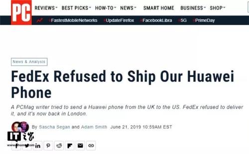 日前,美国知名科技媒体PCMag(《个人电脑》杂志)发文称,该杂志的一位英国记者从伦敦寄往纽约的华为手机被联邦快递强制退回,理由是美国政府与华为、中国政府之间的相关问题。