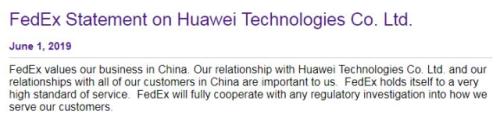 美国当地时间6月1日,联邦快递通过官方网站回应称,联邦快递高度重视在中国的业务。与华为技术有限公司等所有中国客户的关系,对我们而言十分重要。联邦快递致力于为客户提供高标准的服务。我们将全力配合针对联邦快递服务环节的监管调查。