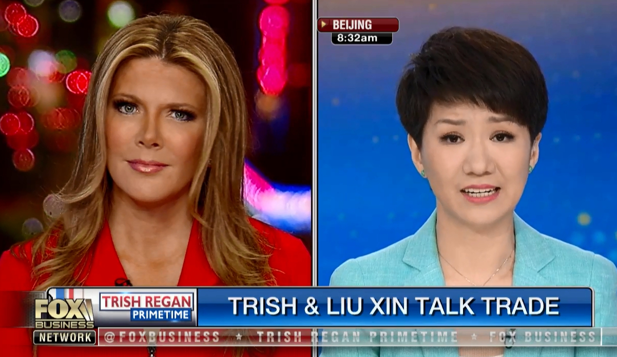 美中貿易戰火延燒到兩國媒體,中國央視旗下環球電視網(CGTN)主播劉欣,應福斯商業網(Fox Business)女主播翠西·雷根(Trish Regan)辯論之邀,在美東時間29日晚隔空對話,兩人從劉欣一開始數度反駁雷根指稱她是中國共產黨員開始,由隔空「互懟」,轉向相對客氣交換不同意見。