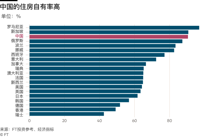 中国在上世纪90年代的房改,城市居民租用的公家房屋,基本都以全价或折价转售给个人,这种居民折价从单位购入的住宅,至今在转让和流通上存在诸多限制,但也算是私有住房。此后的20年间,商品房作为市场经济的主要住房商品,为购买者提供的不仅仅是“住有所居”的安身之处,更是大多数中国人在投资渠道单一的环境中,主要的财富增长方式。根据FT Confidential Research 的季度调研数据,超过90%的受访城市居民拥有自己的房屋,其中30%更是拥有多套房屋。