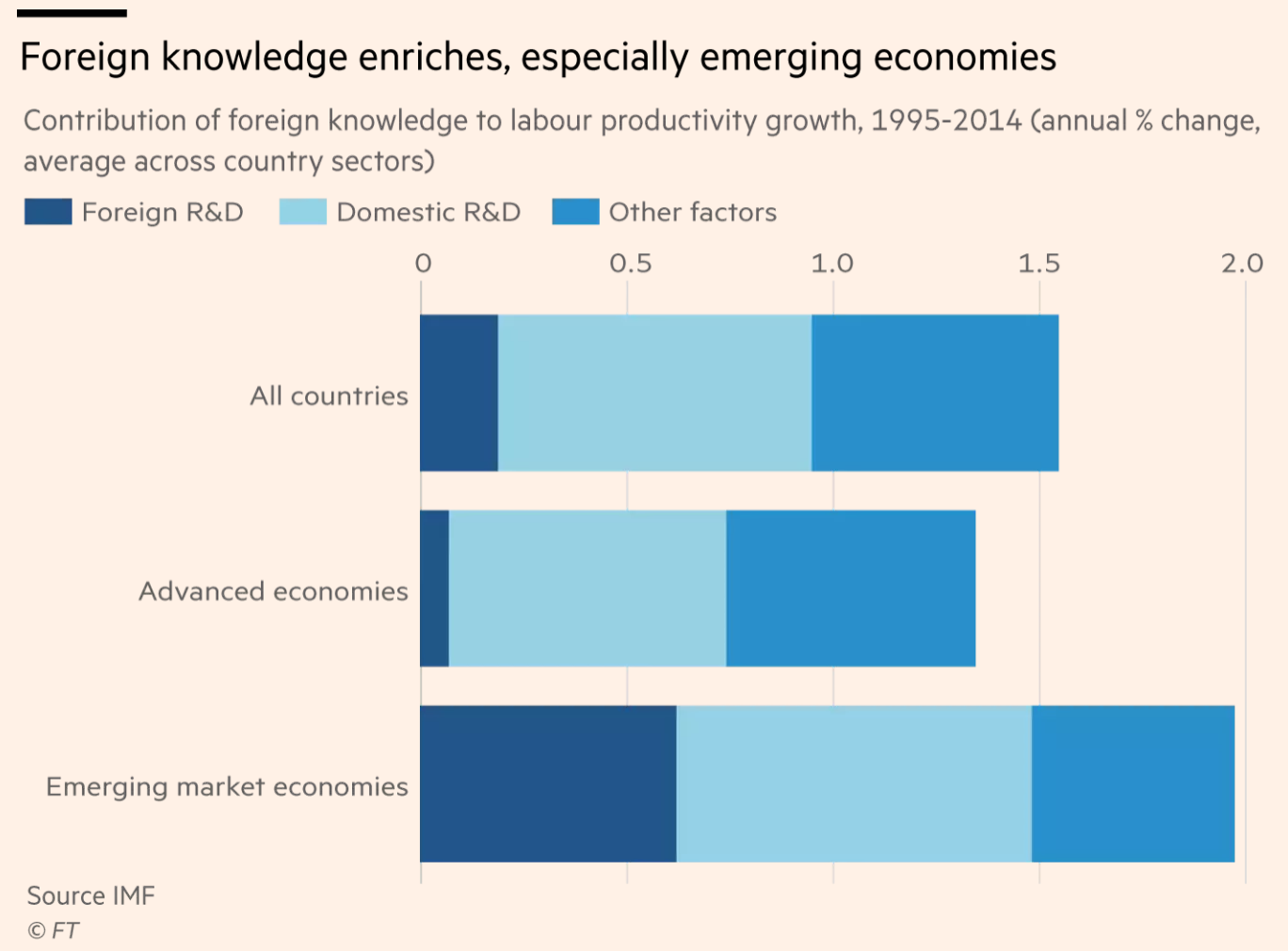 最新的《世界经济展望》(World Economic Outlook)就全球化如何帮助传播了有用的知识写出了极有启发性的一章。这份报告清楚地呈现了当代创新图景、当前知识传播状况、生产率发展现状、全球价值链的作用以及竞争对知识的创造和使用的影响。