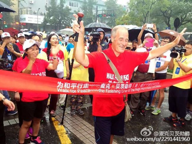 貝茨曾在中國徒步上千公里為慈善募捐,是不少國人熟悉的「中國女婿」。(取材自微博)