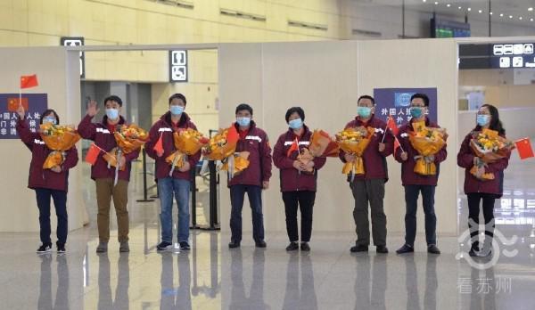4月13日,中国政府赴委内瑞拉抗疫医疗专家组一行8人乘坐飞机,平安抵达南京禄口国际机场,平安归来。