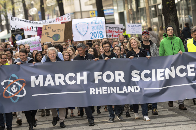 科學大遊行已成為全球性活動,圖為德國科隆的遊行。(美聯社)