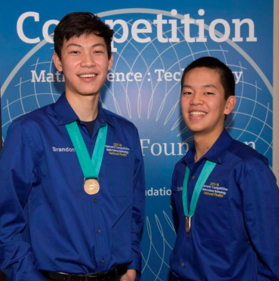 密西根州Herbert Henry Dow高中的Brandon Zhu(左)和隊友Daniel Zhang入圍團體組決賽,獲得2萬5000元獎金。(西門子基金會提供)