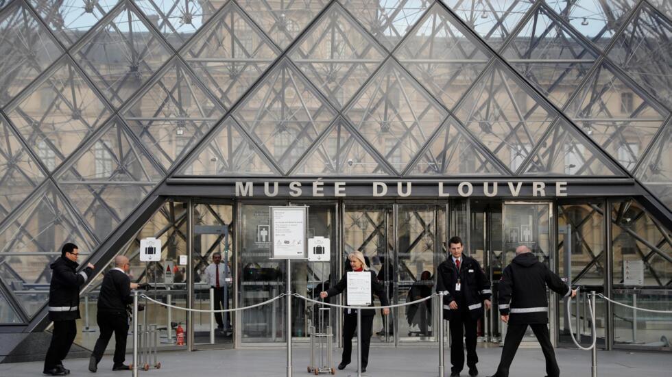 Une photo prise le 13 mars 2020 montre l’entrée du musée du Louvre à Paris, après l’annonce de la fermeture « jusqu’à nouvel ordre », à cause du coronavirus. © Siegfried Forster / RFI 法广