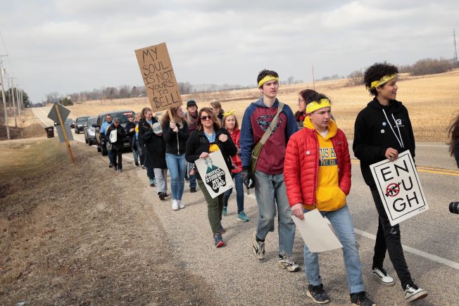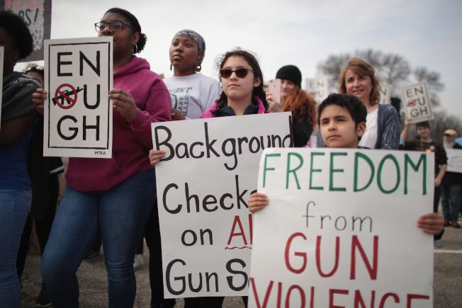月底全美高中生串連走出教室,呼籲嚴格控槍。(Getty Images)