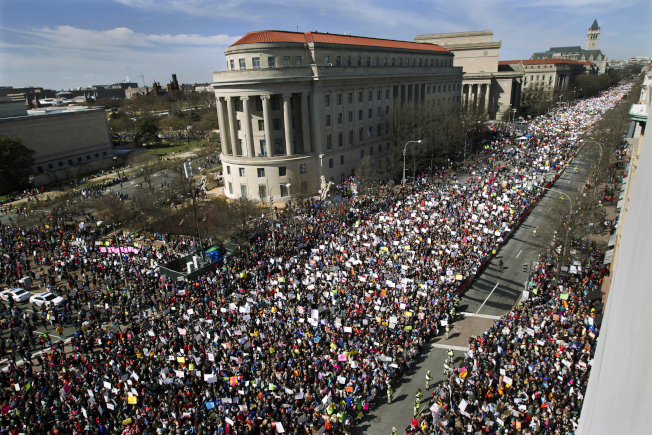 成千上萬民眾走上華府街頭,參加「為性命而走」,支持嚴格控槍。(美聯社)