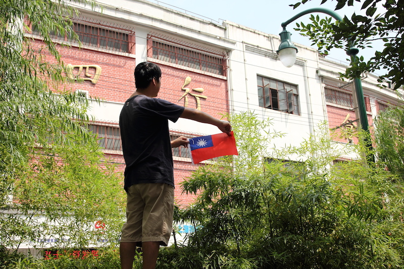 身為一個愛國青年,自然要效法一下當年楊惠敏的精神,親自送上一面國旗來四行倉庫,以紀念當年的抗日先烈。只可惜現在飄揚在這片土地上的已經不再是青天白日滿地紅旗了,一切都已成為歷史,這面青天白日滿日紅旗不知道會不會在我有生之年在這世界上消失,唉,年輕時候再怎麼的憤青,過了幾年現實的磨礫之後,那種憤青的書生意氣也終將給磨平了。