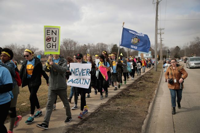月底全美高中生串連走出教室,呼籲嚴格控槍。(Getty Images)