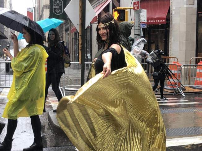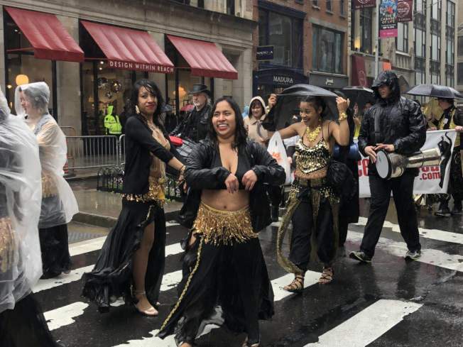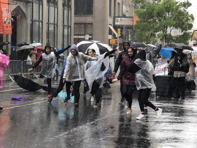 紐約舞蹈嘉年華,舞者雨中狂歡。(記者陳小寧/攝影)