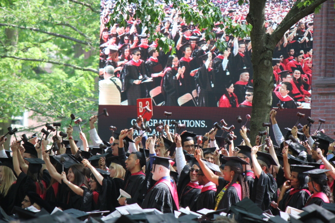 哈佛學生校報2017屆哈佛本科畢業生調查數據出爐。圖為早年哈佛畢業典禮場景。(本報資料圖)
