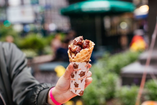 炸雞甜筒業者「Chickn Cone」,採用純手工自家烘焙的蛋捲與現炸雞塊合而為一。 (取自urbanspace instagram)