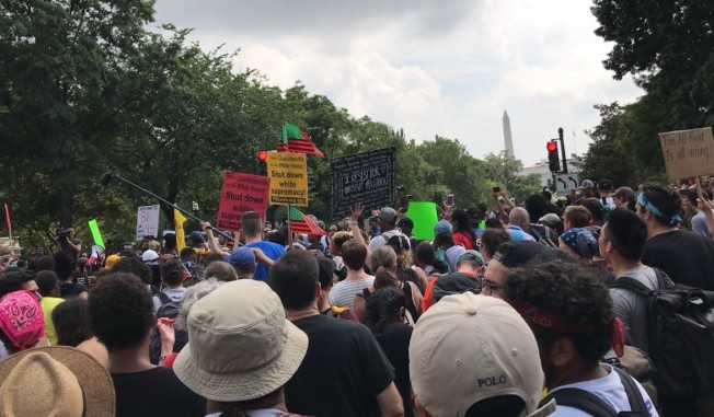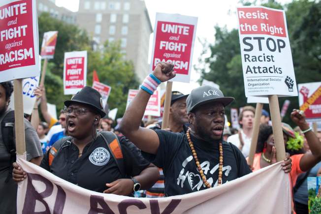 反白人至上的示威者12日在華府集合,籲求停止歧視。(美聯社)
