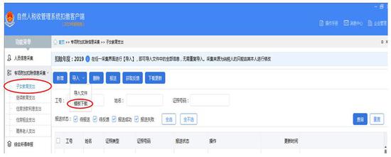 扣缴客户端软件下载地址:专项附加扣除信息采集-选择任一专项附加扣除项目-导入-模板下载