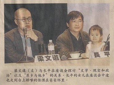 这是2011年,在马来西亚吉隆坡,我和朋友梁文道都是"花踪文学奖"评委。我们正在发言的时候,两岁的女儿跑上台来,坚持要给我们倒水。我没有推走她,而是把她抱在怀里,继续发言。