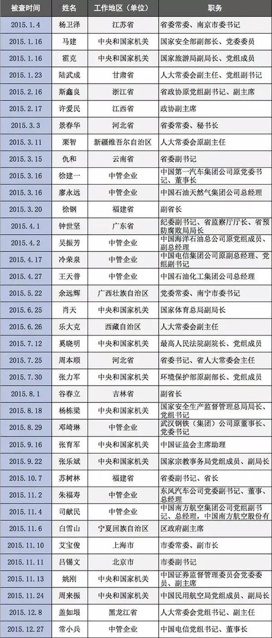 在刚刚过去的2015年,中央纪委监察部网站先后发布了37条中管干部接受组织调查信息。岁末年初之际,让我们带您透过这些数据,一起回顾这一年中央反腐肃贪的坚定步伐。