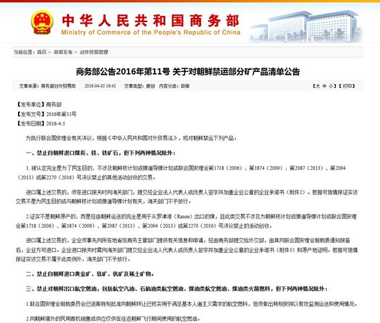 为执行联合国安理会有关决议,根据《中华人民共和国对外贸易法》,现对朝鲜禁运下列产品: